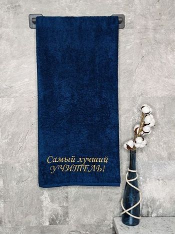 Полотенце с вышивкой 70*140 "Лучший УЧИТЕЛЬ" темно-синее