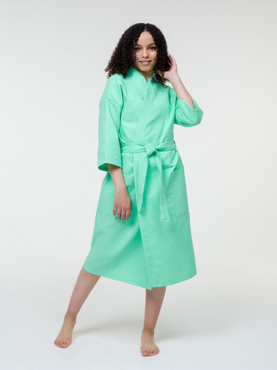 Халат достаточно легкий, а мелкие квадратики вафельной ткани создают воздушную подушку между халатом и кожей, за счет чего сохраняется комфортная температура тела, а после водных процедур кожа быстрее высыхает.