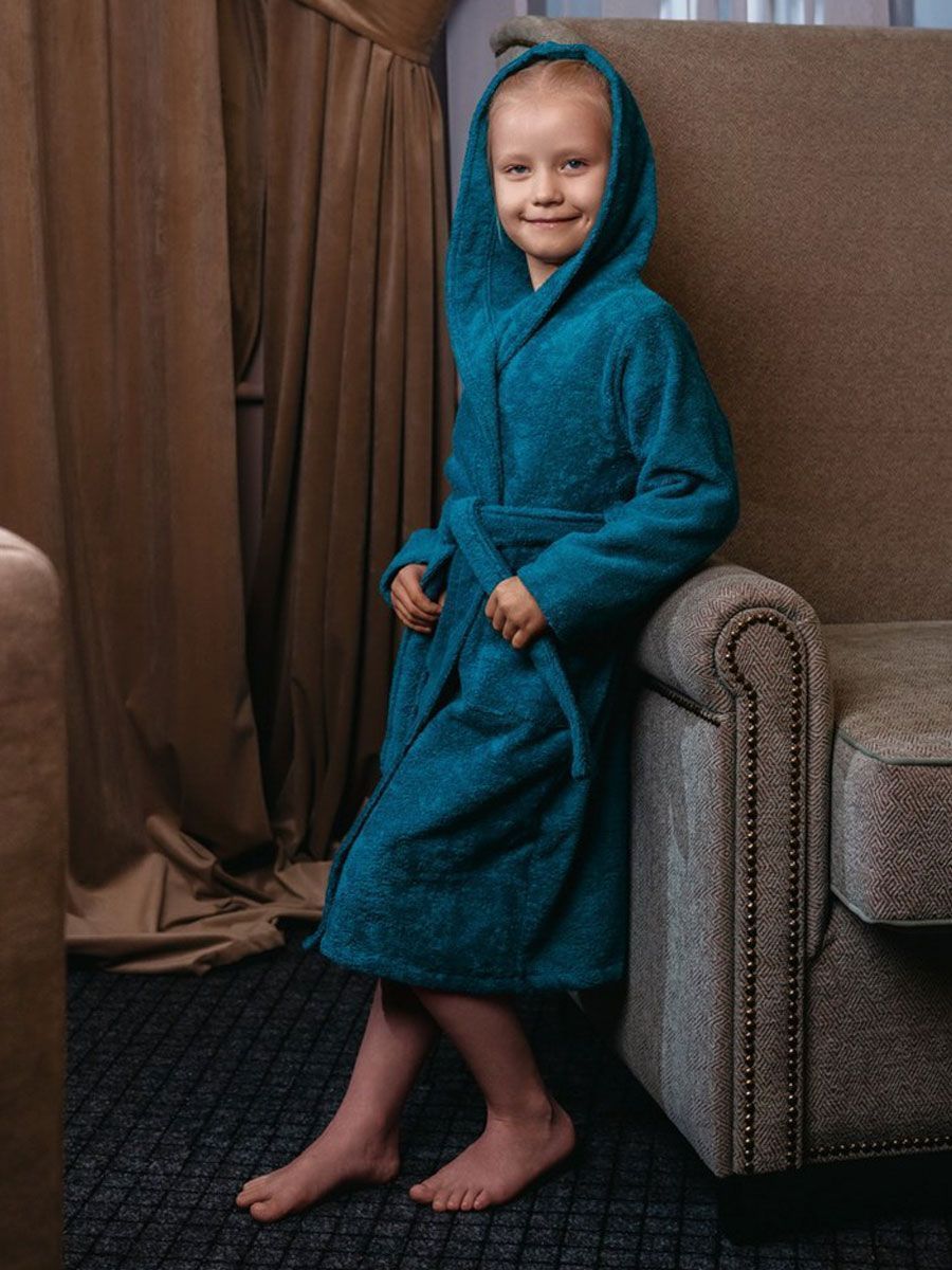 Халат махровый детский с капюшоном морская волна